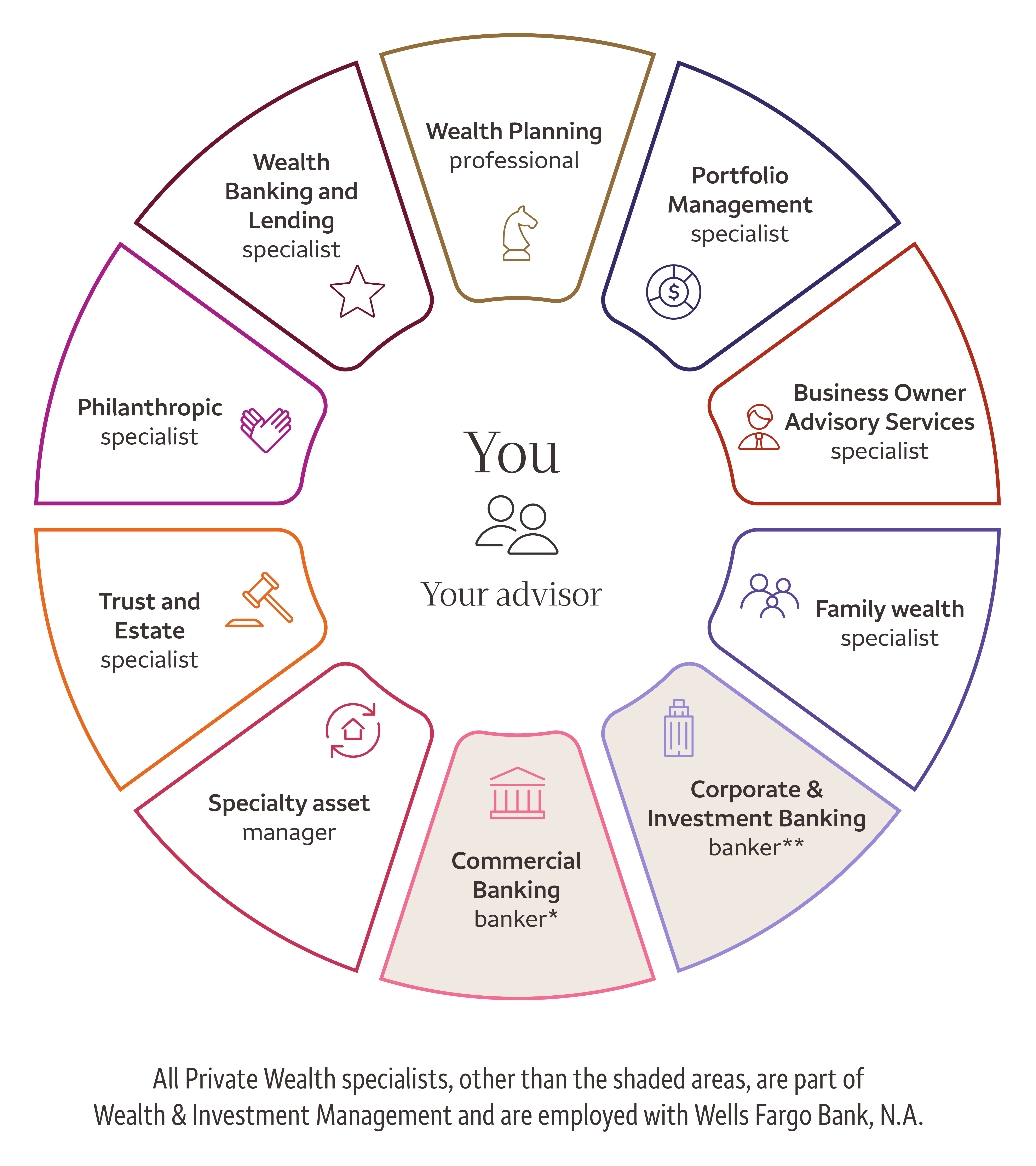 Customization is at the heart of our wealth planning process, as we create a structured path for more informed decision-making. Your personal advisory team can partner with a Wells Fargo specialist on a comprehensive wealth plan, including: